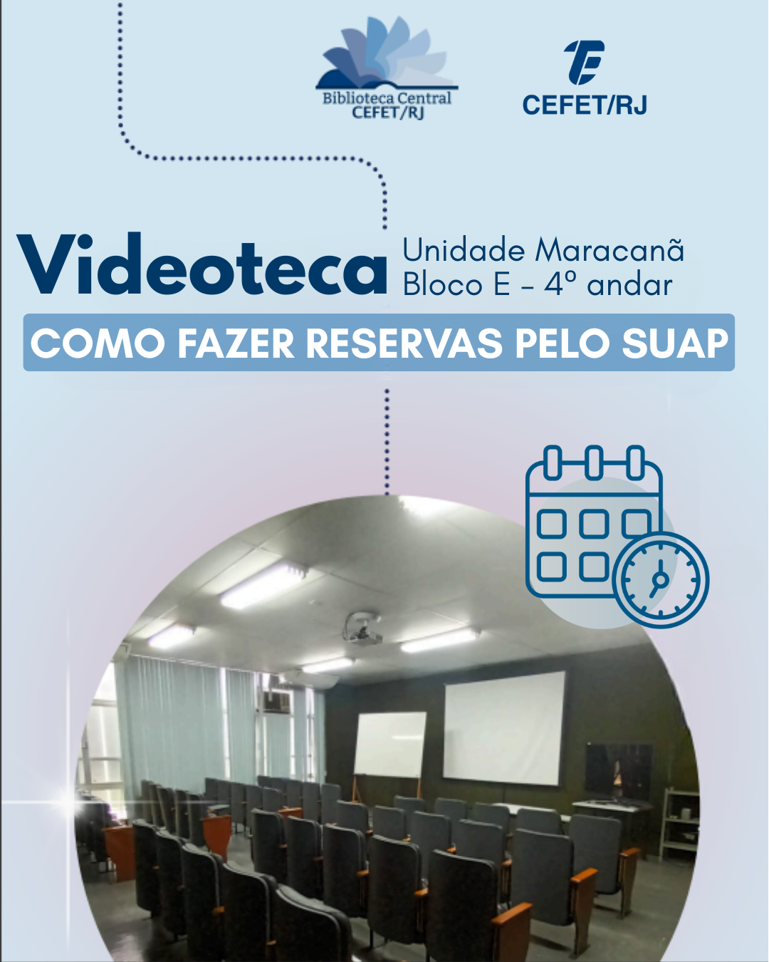 A Biblioteca Central informa que, a partir de agora, as reservas da Videoteca, localizada no 4º andar do Bloco E da Unidade Maracanã, deverão ser realizadas exclusivamente pelo Sistema Unificado de Administração Pública (SUAP).