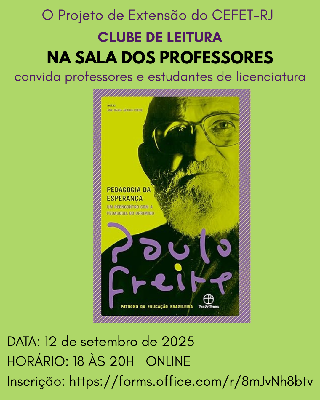 O Projeto de Extensão, do Cefet/RJ, Clube de leitura: na sala dos professores, coordenado pela professora Alessandra Magalhães, convida professores, professoras e estudantes de...