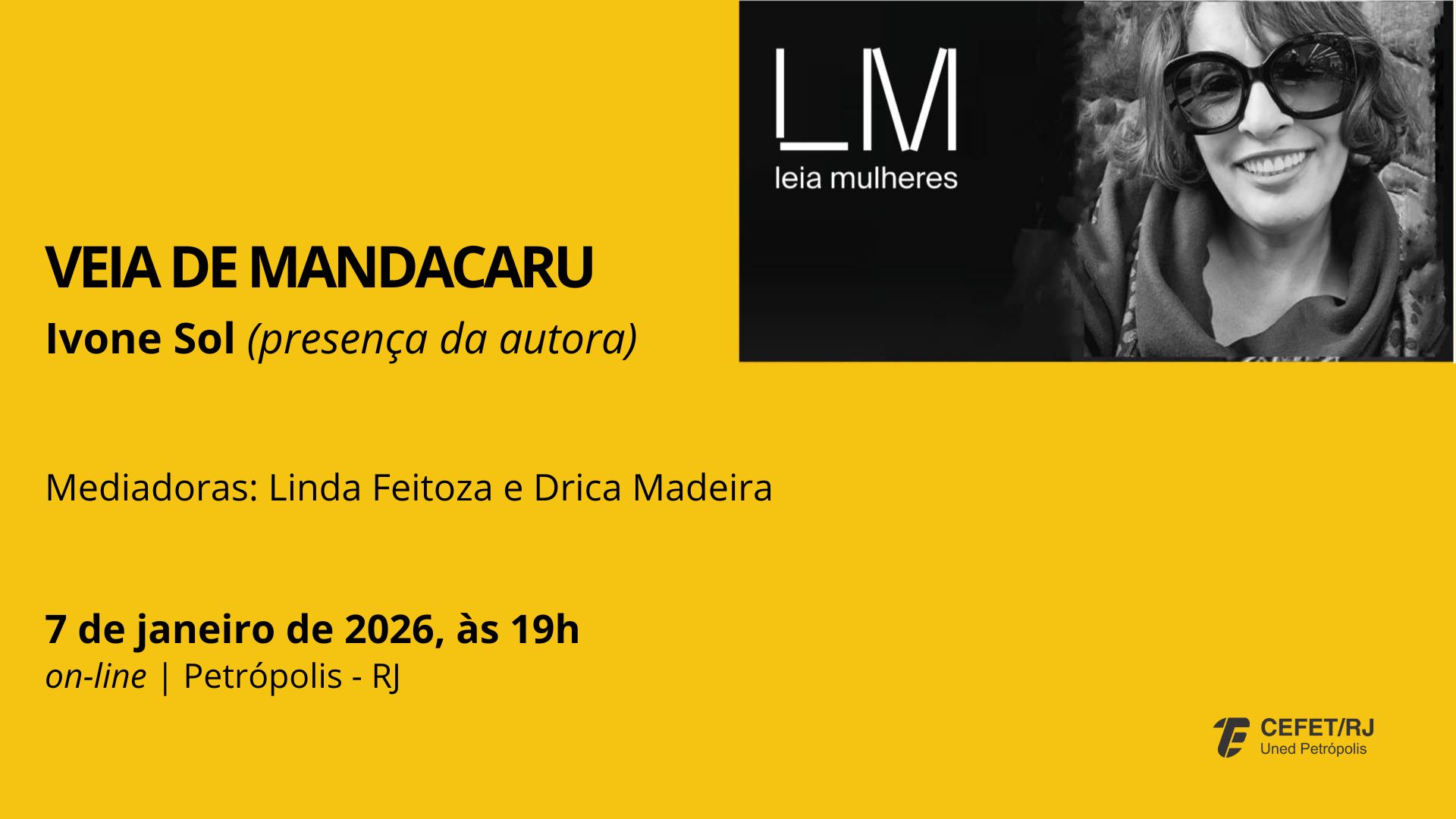 O encontro, que contará com a mediação de Linda Feitoza e Drica Madeira, será on-line no dia 7 de janeiro, a partir das 19h, pelo Google Meet. Os interessados em participar devem solicitar o link do evento por meio das redes sociais – Leia Mulheres Petrópolis no Instagram e  grupo Leia Mulheres Petrópolis-RJ no Facebook