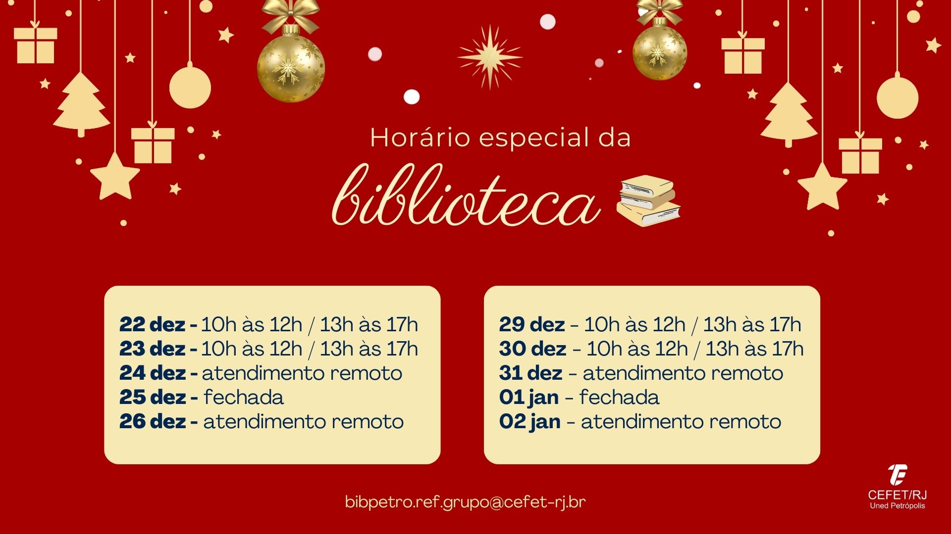Horário especial de fim de ano no Cefet/RJ Petrópolis