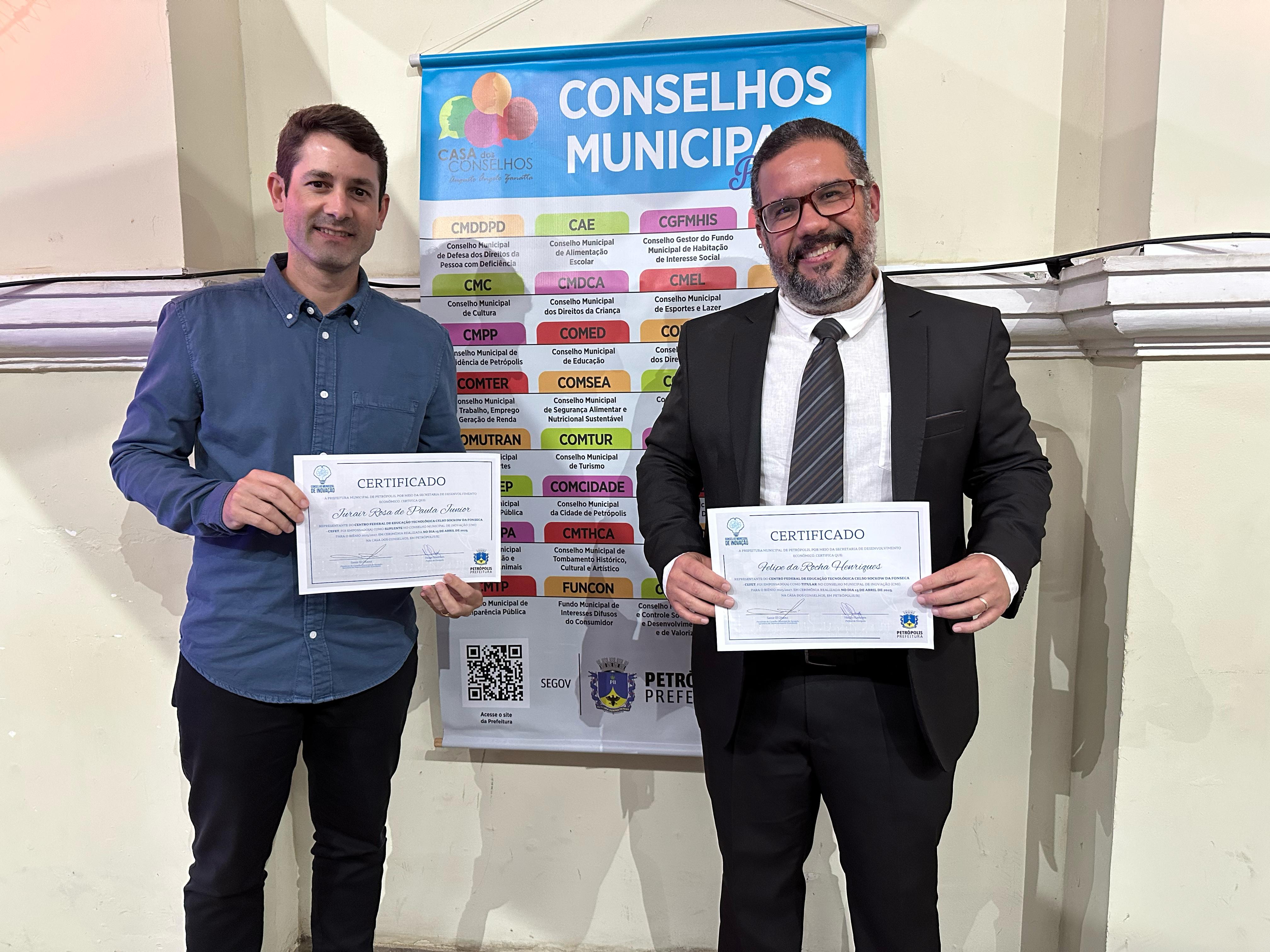 O diretor do Cefet/RJ Petrópolis, Felipe Henriques, foi eleito vice-presidente do Conselho Municipal de Inovação (CMI) em assembleia ordinária realizada no último dia 6 de maio. O gerente acadêmico da unidade, Jurair Rosa, ocupa a posição de suplente.