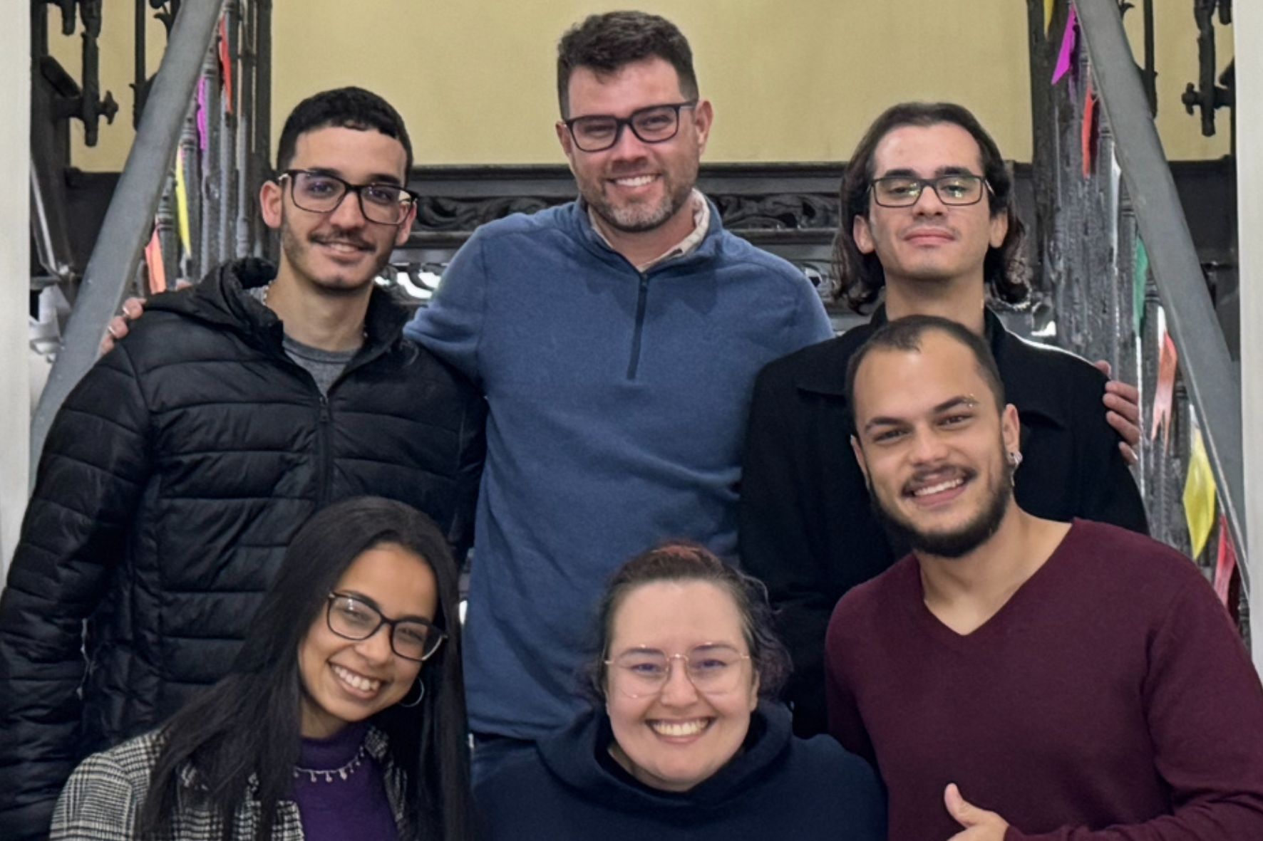 (Em cima, da esq. para dir.): João Carlos Coelho, professor João Paulo Fernandes e Erick Kraes.