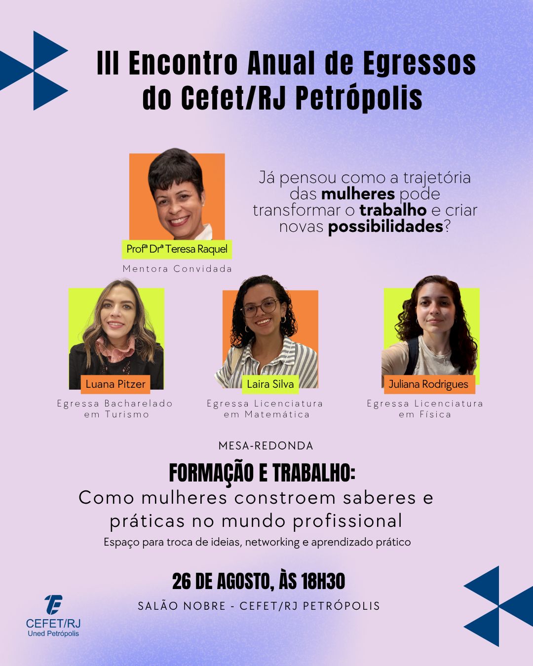 No dia 26 de agosto, durante a Semana de Acolhimento aos Calouros, será promovido o III Encontro de Egressos do Cefet/RJ Petrópolis. O evento acontecerá no Salão Nobre às 18h30 e...