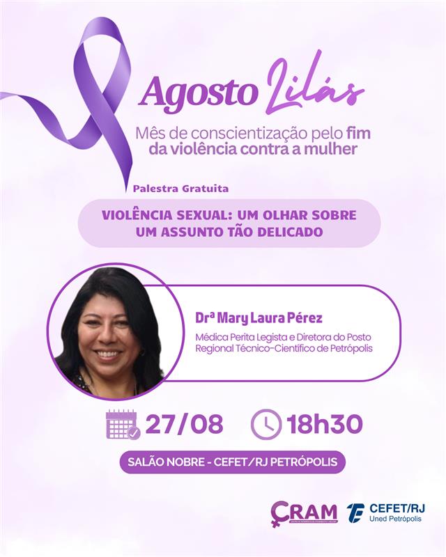 O Cefet/RJ Petrópolis realiza no dia 27 de agosto (quarta-feira) a palestra “Violência sexual, um olhar sobre um assunto tão delicado”. Promovido pelo Centro de Referência em...