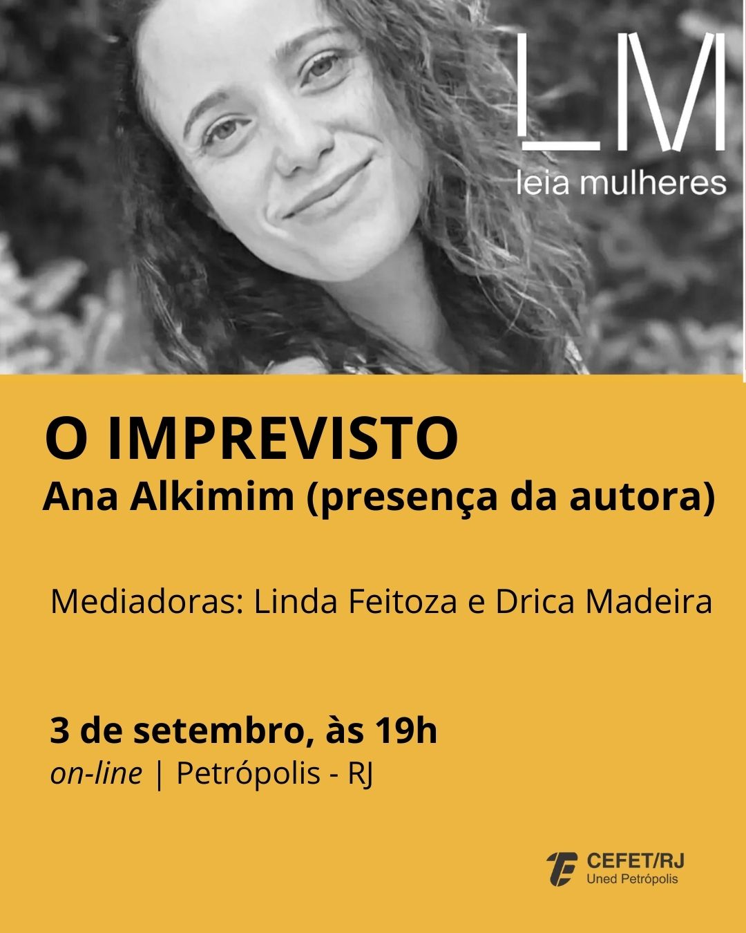 O próximo Leia Mulheres Petrópolis vai receber a escritora carioca Ana Alkimim para falar do seu livro “O Imprevisto”. A obra é uma narrativa poética sobre a experiência do aborto...