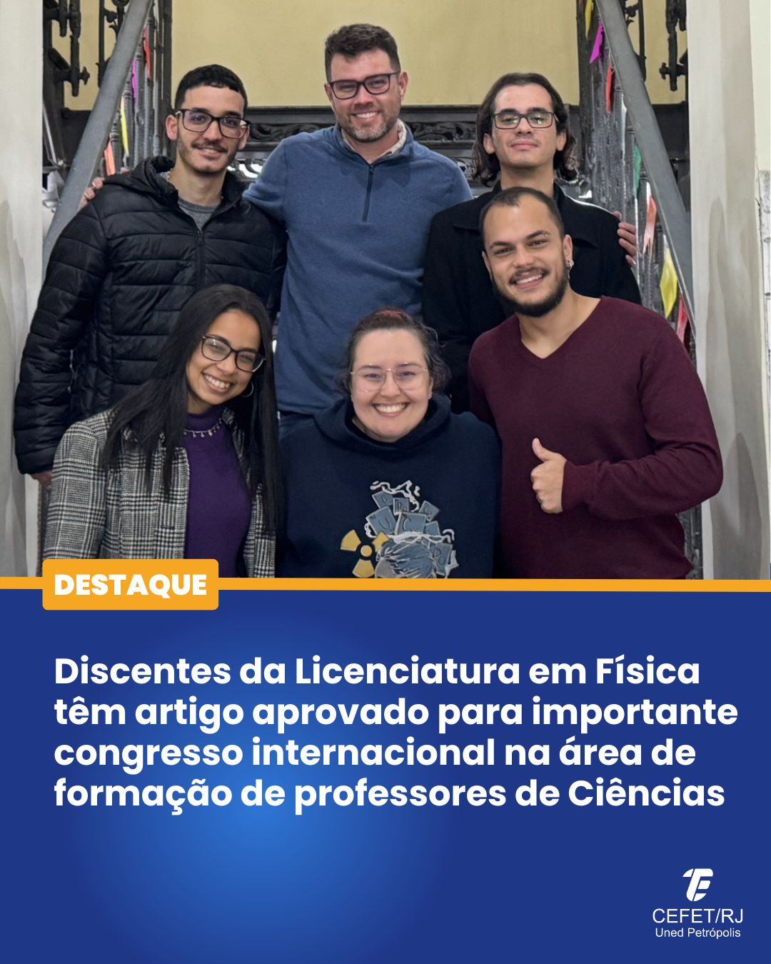 Cinco alunos do curso de Licenciatura em Física do Cefet/RJ Petrópolis tiveram seu artigo aceito no XI Congreso Internacional sobre Formación de Professores de Ciencias (CIFPC). O...