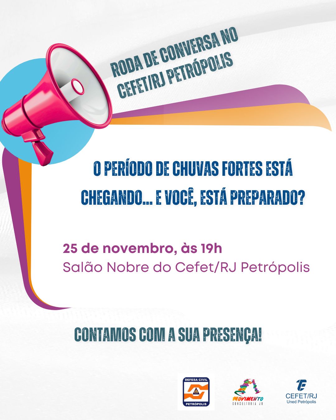 Com a chegada do período de chuvas mais fortes, a empresa júnior do Cefet/RJ Petrópolis – Movimento Consultoria Júnior – promove no dia 25 de novembro (terça-feira) uma roda de...