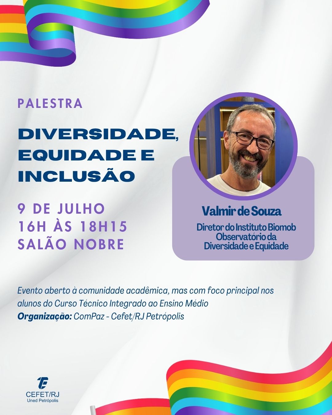 Dando continuidade à campanha de conscientização e enfrentamento à LGBTQIAPN+fobia, a Comissão para a Promoção de uma Cultura de Paz (ComPaz) do Cefet/RJ Petrópolis realiza no...