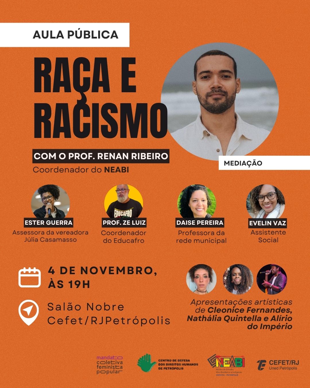 O Núcleo de Estudos Afro-brasileiros e Indígenas (Neabi) do Cefet/RJ Petrópolis promove na próxima terça-feira, dia 4 de novembro, às 19h, a aula aberta pública “Raça e...
