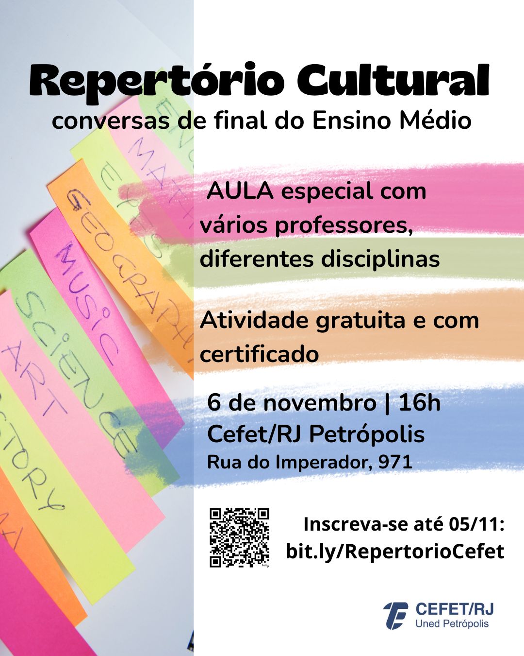 Às vésperas do Enem, o Cefet/RJ Petrópolis vai realizar uma aula voltada para os estudantes que vão prestar o exame: “Repertório Cultural: conversas de final do ensino médio”. A...
