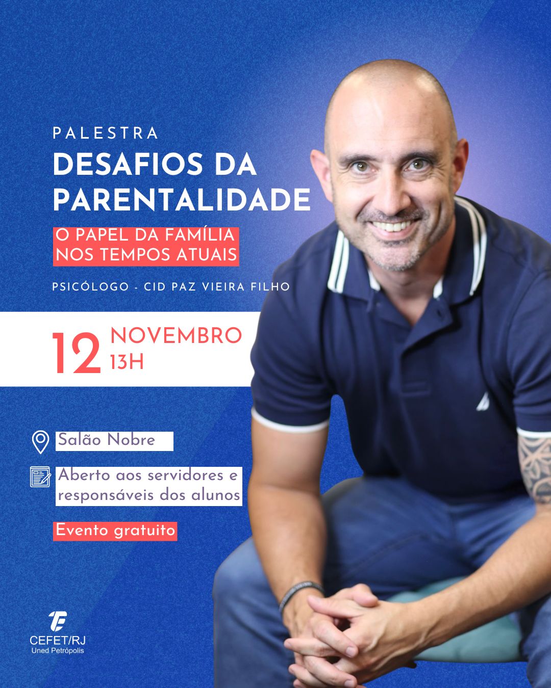 O Cefet/RJ Petrópolis promove no dia 12 de novembro a palestra “Desafios da Parentalidade: o papel da família nos tempos atuais”, com o psicólogo Cid Paz Vieira Filho. O encontro,...