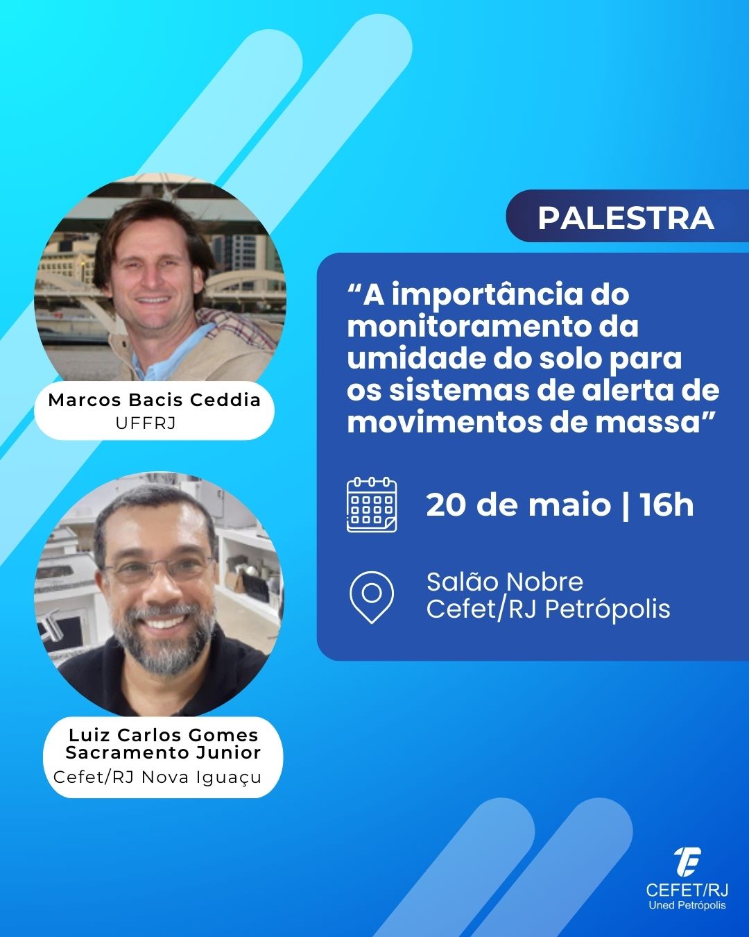 O Cefet/RJ Petrópolis promove na próxima terça-feira, dia 20 de maio, a palestra "A importância do monitoramento da umidade do solo para os sistemas de alerta de movimentos de massa"....