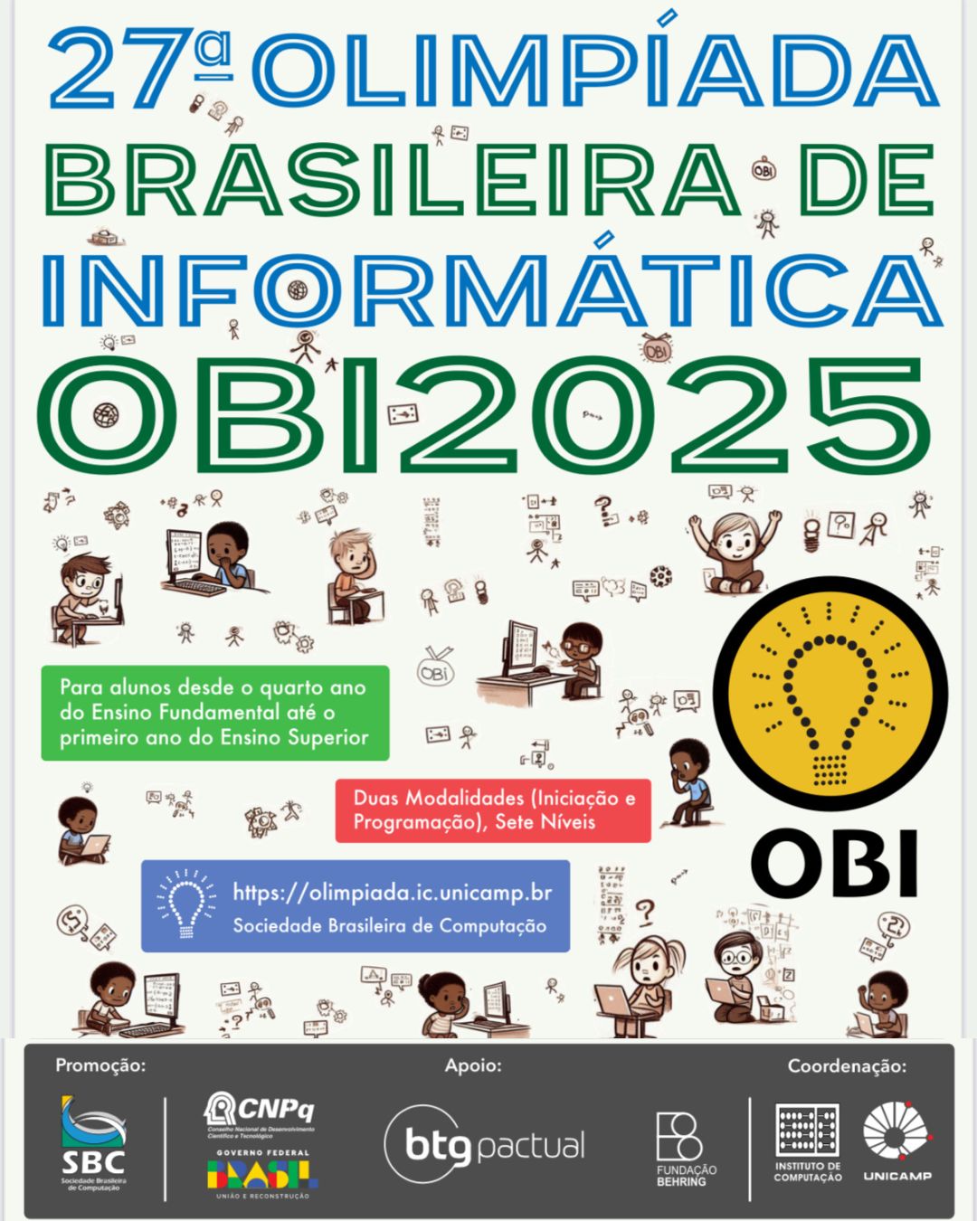 Estão abertas até o dia 9 de junho as inscrições para a 27ª Olimpíada Brasileira de Informática (OBI 2025), organizada pelo Instituto de Computação da Unicamp. A competição...