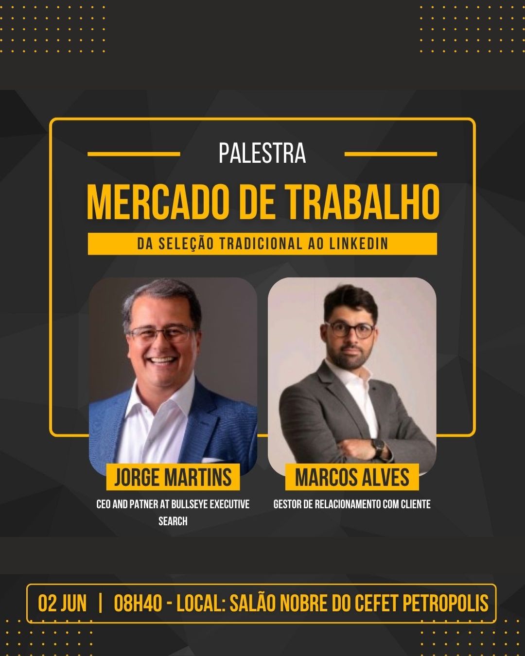O Cefet/RJ Petrópolis promove na próxima segunda-feira, dia 2 de junho, a palestra “Mercado de trabalho: da seleção tradicional ao LinkedIn”, que será ministrada por Jorge Martins,...