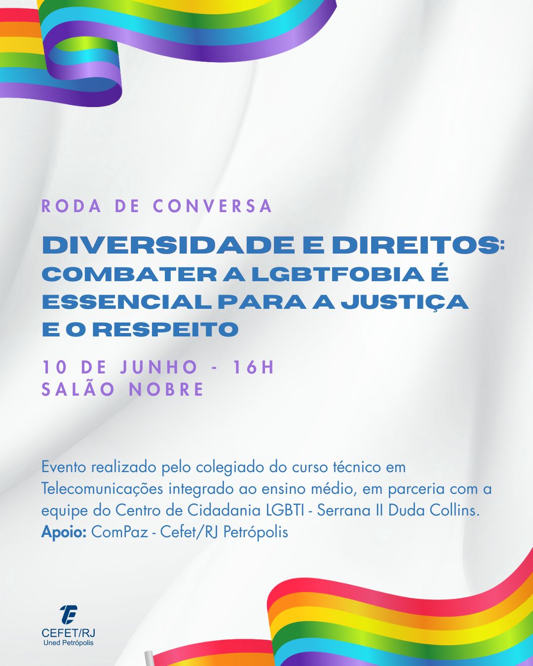 No próximo dia 10 de junho, o Cefet/RJ Petrópolis realizará a roda de conversa "Diversidade e direitos: combater a LGBTfobia é essencial para a justiça e o respeito". O evento é fruto...
