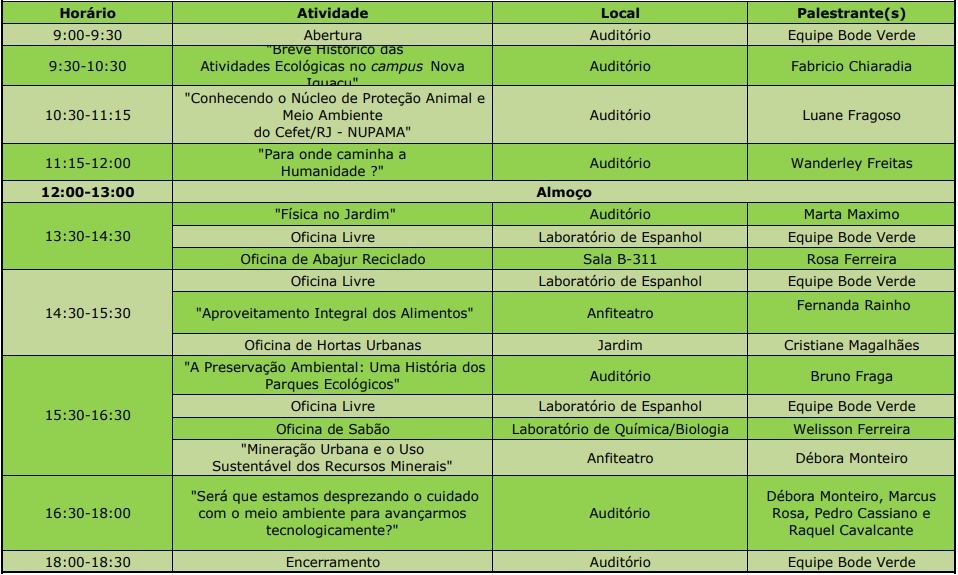 Clique no link para acessar a programação do Green Day 2019 – campus Nova Iguaçu.