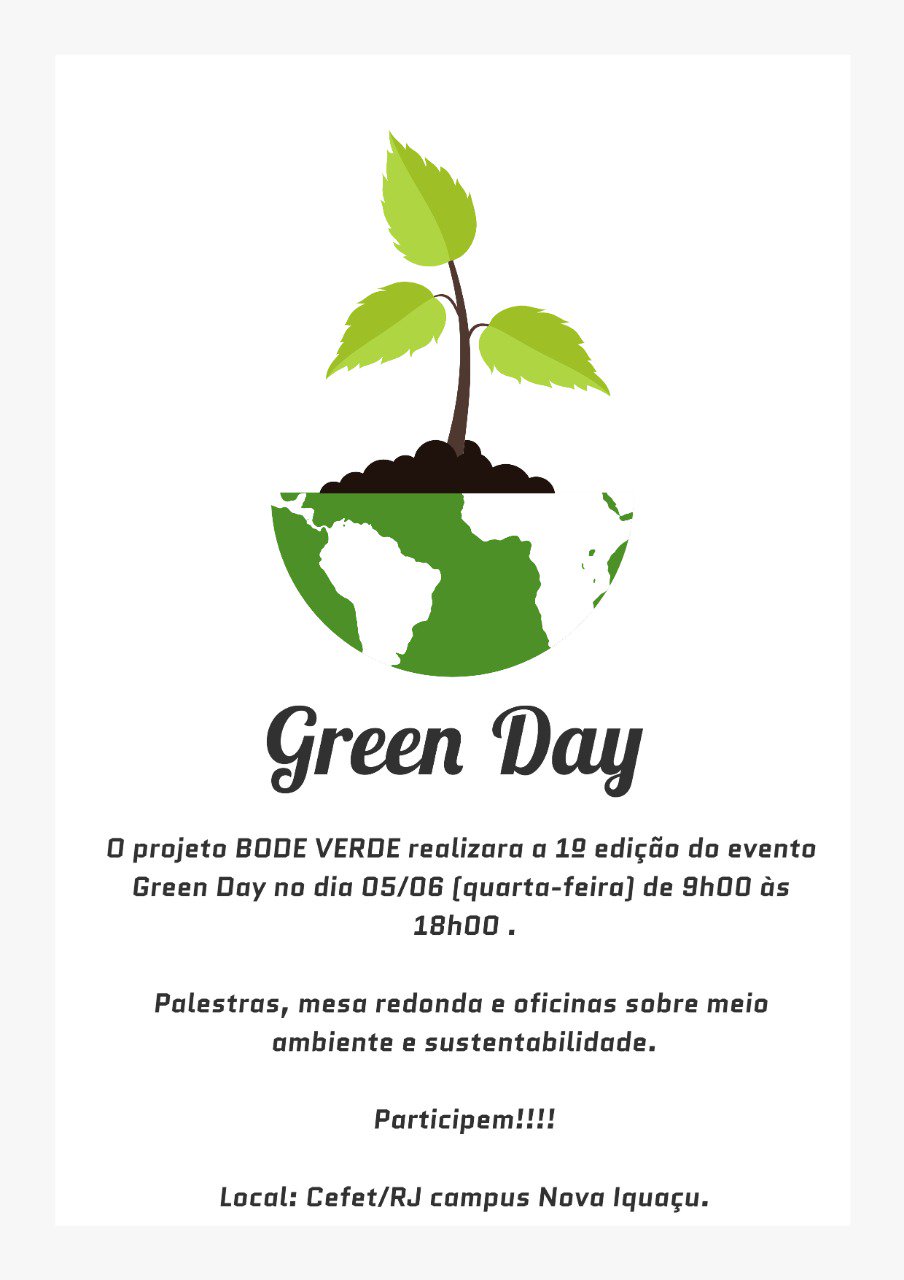 O Green Day é um evento promovido pelo projeto de extensão do campus Nova Iguaçu Bode Verde. Conta com palestras, oficinas e mesa-redonda, com temáticas voltadas para o meio ambiente e a sustentabilidade, que ocorrerão nos turnos da manhã e da tarde.