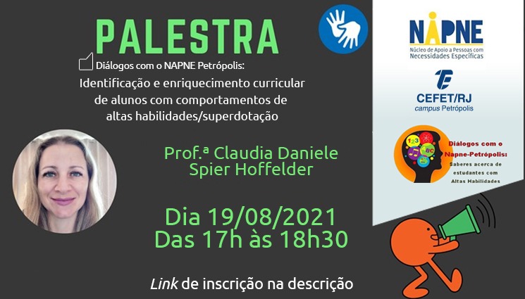 19/08/2021 – Palestra “Diálogos com o NAPNE Petrópolis: Identificação e enriquecimento curricular de alunos com comportamentos de altas habilidades/superdotação”