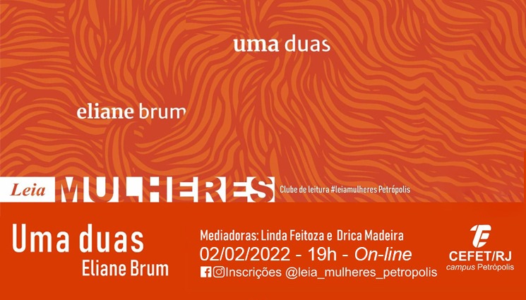 Em fevereiro, o clube de leitura Leia Mulheres irá debater o romance de estreia da jornalista, escritora e documentarista Eliane Brum: Uma duas. O livro aborda a relação de ódio e afeto entre Laura e sua mãe, trazendo um retrato expressionista e dramático, sem clichês ou eufemismos, do intrincado relacionamento entre ambas. O encontro será realizado no próximo dia 2, às 19h, pela plataforma on-line Google Meet.