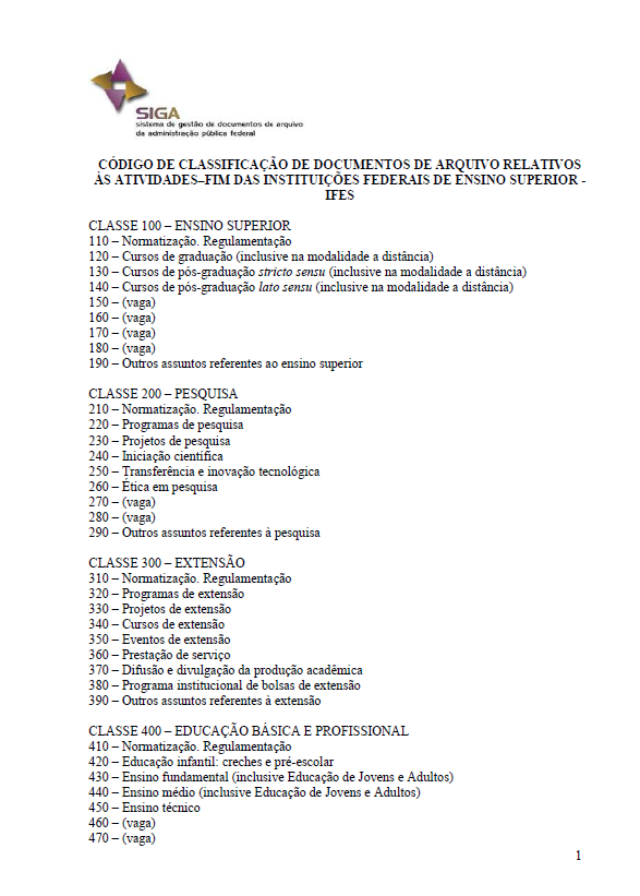 Código de classificação e tabela de temporalidade e destinação de documentos relativos às atividades-meio/suporte do Poder Executivo federal | Código de classificação e a Tabela de temporalidade e destinação de documentos de arquivo relativos às atividades-fim das Instituições Federais de Ensino Superior (IFES) |