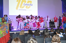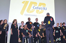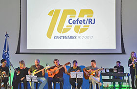 A abertura da solenidade de comemoração do centenário, no dia 11 de agosto, foi realizada por um grupo musical composto por nove servidores do Cefet/RJ, que tocaram clássicos da MPB como “Asa Branca”, de Luiz Gonzaga, e “Samba do Avião”, de Tom Jobim.