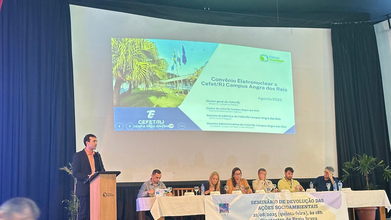 O convênio firmado entre a Eletronuclear e a Uned Angra dos Reis, que proporcionou melhoria das instalações administrativas e acadêmicas da instituição, foi destaque do Seminário de Devolução das Ações dos Programas Socioambientais da Central Nuclear Almirante Álvaro Alberto (CNAAA), promovido pela Eletronuclear. O evento aconteceu no dia 21 de agosto, no Cineteatro de Praia Brava, em Angra dos Reis (RJ), e reuniu membros da comunidade, instituições parceiras e gestores públicos para apresentar os resultados das iniciativas socioambientais promovidas pela empresa. A Uned Angra foi representada pelo diretor, Everton Pedroza, e pela gerente administrativa, Elisabeth Couto.
