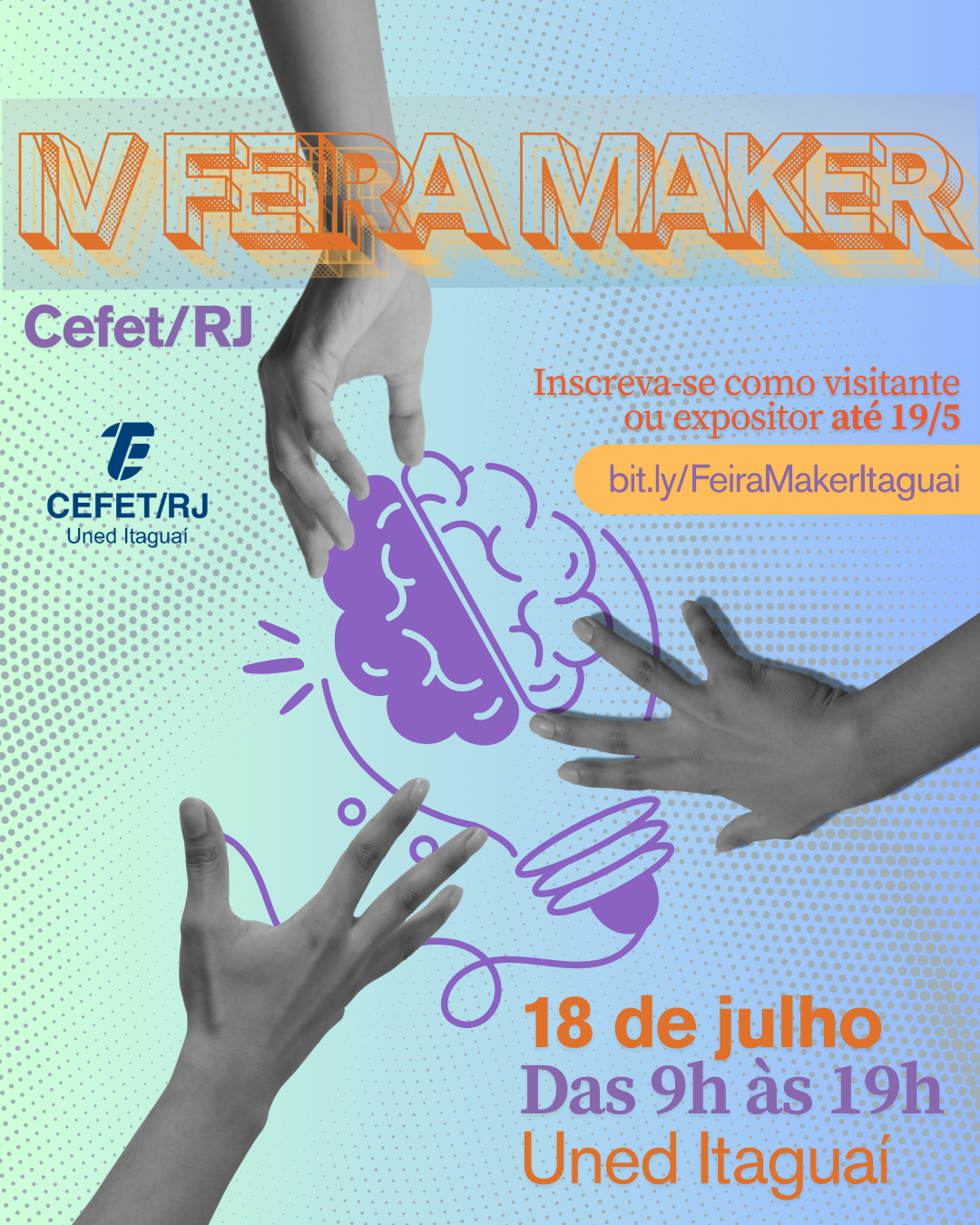 O Cefet/RJ promoverá a IV edição da Feira Maker, que será realizada no dia 18 de julho, das 9h às 19h, na Uned Itaguaí. Com foco na cultura maker, o evento fomenta um ambiente de criatividade, colaboração e inovação, com uma programação aberta à comunidade, incluindo palestras, oficinas, exposições e premiações.
