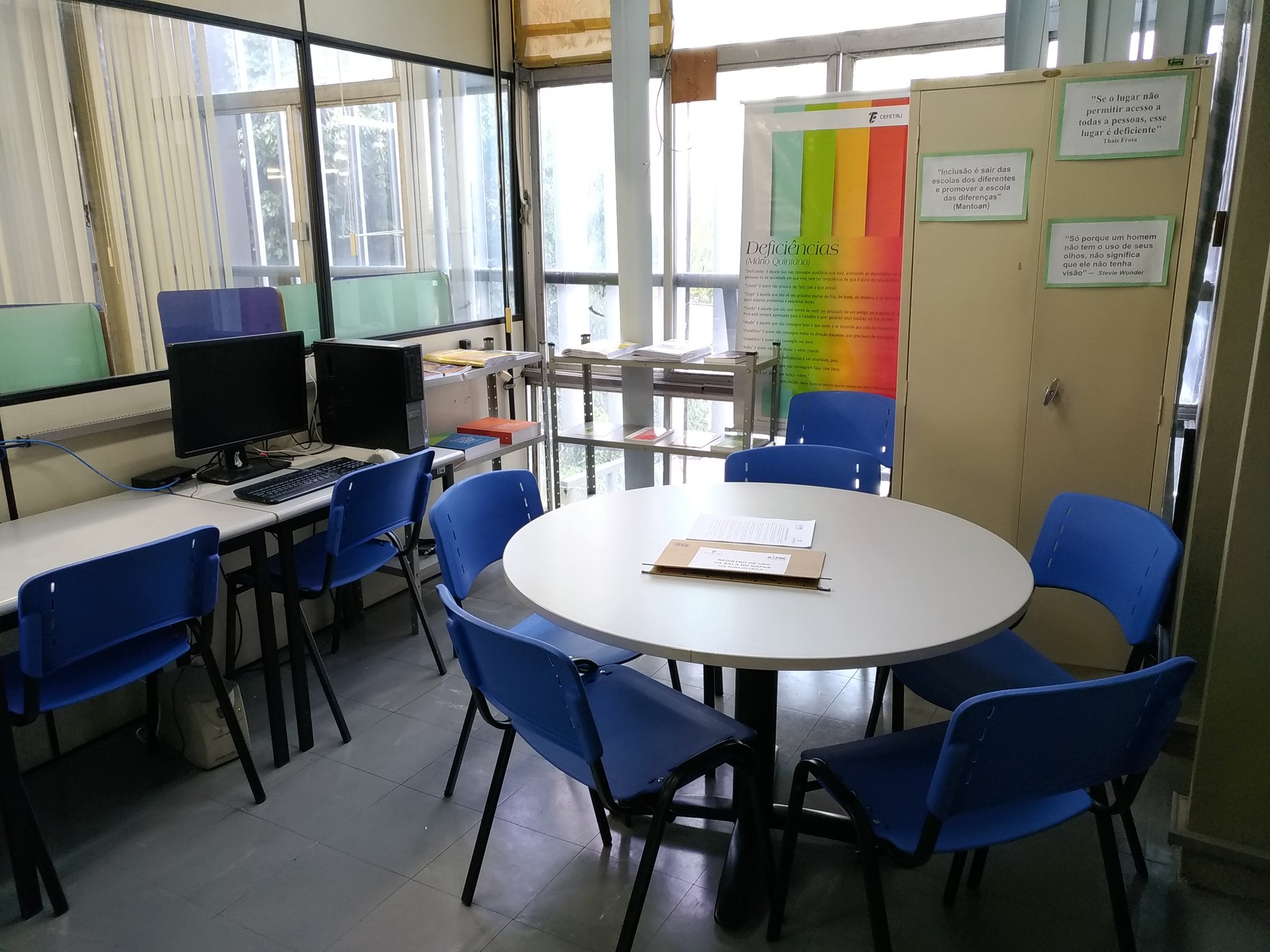 No dia 29 de agosto foi inaugurada a nova sala de leitura do Núcleo de Apoio a Pessoas com Necessidades Específicas (Napne) na Biblioteca Central, campus Maracanã. A sala é para uso de alunos e servidores e tem como objetivo efetivar o projeto de extensão “Ledores: olhos que conduzem ao saber”, viabilizar o estudo da temática da inclusão e capacitar alunos e servidores em tecnologia assistiva.