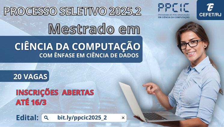 O Programa de Pós-Graduação em Ciência da Computação (PPCIC) da Unidade Maracanã iniciou, no último sábado (1º), as inscrições para o mestrado, com ingresso no segundo trimestre de 2025. O prazo para se candidatar à oportunidade vai até o dia 16 de março. Neste edital, o curso oferta 20 vagas, sendo metade delas reservadas pelo sistema de cotas raciais e 10% destinadas a pessoas com deficiência. Para concorrer às vagas, é necessário ter diploma de curso superior reconhecido pelo Ministério da Educação (MEC) em qualquer área do conhecimento.