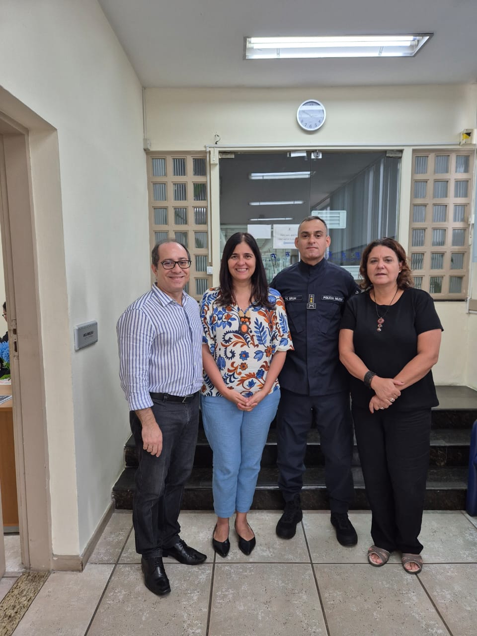 Da esq. para a dir., Mauricio Motta, diretor-geral do Cefet/RJ, Gisele Vieira, vice-diretora do Cefet/RJ, tenente-coronel Brum, comandante do 6º BPM, e Irene de Barcelos, chefe do Departamento de Ensino Médio e Técnico (DEMET)