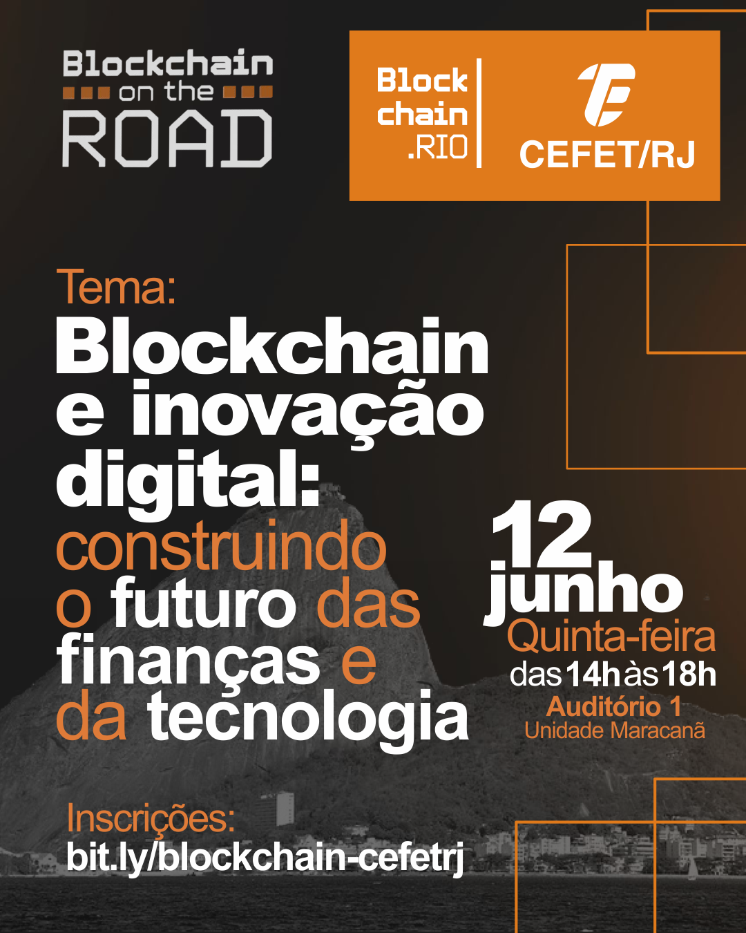 Na próxima quinta-feira (12), a Unidade Maracanã vai sediar o evento “Blockchain on the road”, com o tema "Blockchain e inovação digital: construindo o futuro das finanças e da tecnologia". A atividade é aberta aos estudantes do Cefet/RJ interessados na área e acontecerá das 14h às 18h, no Auditório 1. As inscrições podem ser realizadas pelo link bit.ly/blockchain-cefetrj. A programação completa de palestras e demais atividades será divulgada em breve nessa mesma página.