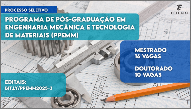 O Cefet/RJ está com inscrições abertas, até 21 de agosto, para o Programa de Pós-Graduação em Engenharia Mecânica e Tecnologia de Materiais (PPEMM), com ingresso no terceiro trimestre de 2025. Ao todo, serão selecionados 16 candidatos para o mestrado e 10 para o doutorado, com vagas distribuídas entre ampla concorrência e ações afirmativas. Os cursos são ofertados na Unidade Maracanã.
