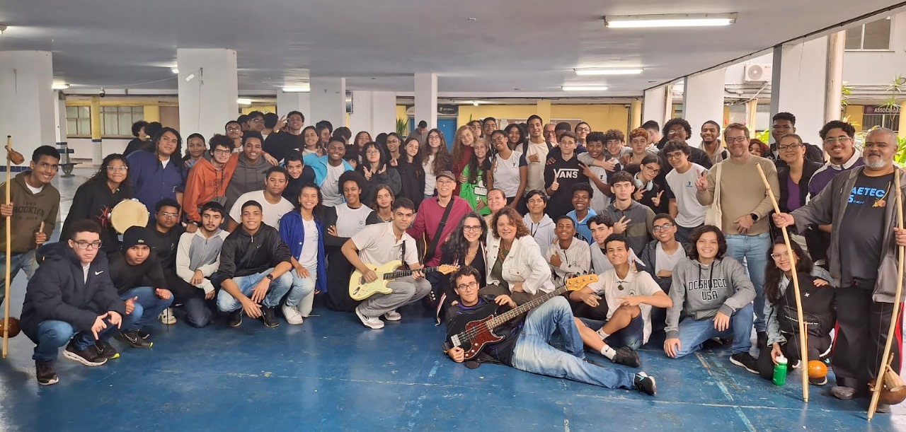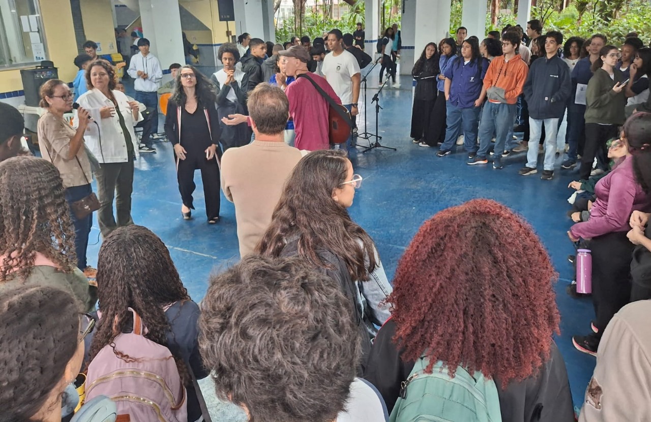 Em um gesto simbólico de união e amizade, a banda da Escola Técnica Estadual Ferreira Viana (FAETEC) realizou uma visita ao Cefet/RJ Unidade Maracanã nesta quarta-feira (2). A apresentação ocorreu no Pátio Azul e contou com repertório de clássicos da música popular brasileira. A ação marca o fim das desavenças após os episódios de violência envolvendo estudantes das duas instituições, ocorridos nos dias 24 e 25/6. Leia a nota conjunta publicada pelo Cefet/RJ e pela FAETEC.