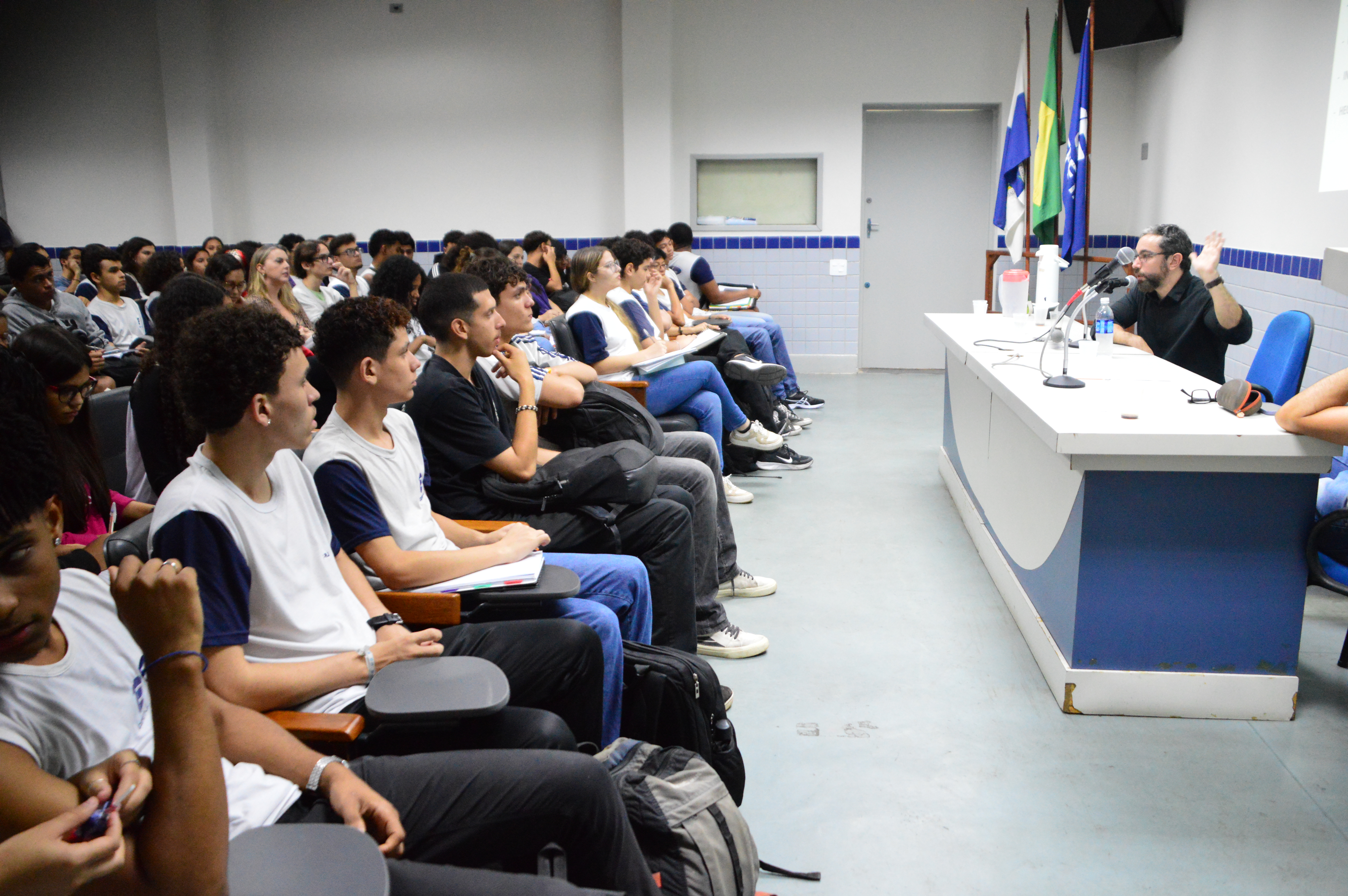 Na mesa de abertura, o professor André Couto, da Coordenação de História, destacou que o evento pretende discutir a geopolítica do século XX e os momentos contemporâneos, relacionando transformações históricas às questões sociais que ainda moldam o presente. A professora Caroline Bordalo, da Coordenação de Sociologia, reforçou o papel do Cefet/RJ como um espaço de formação integral: “somos uma escola técnica, mas também um lugar de ampliar o debate para além da sala de aula, de entender a importância de discutir o porquê das coisas”. O vice-diretor de Ensino, Maicon Jéferson, lembrou que experiências como essa são marcantes e formativas, ao ponto de provocar reflexões e redirecionar a trajetória de estudantes.