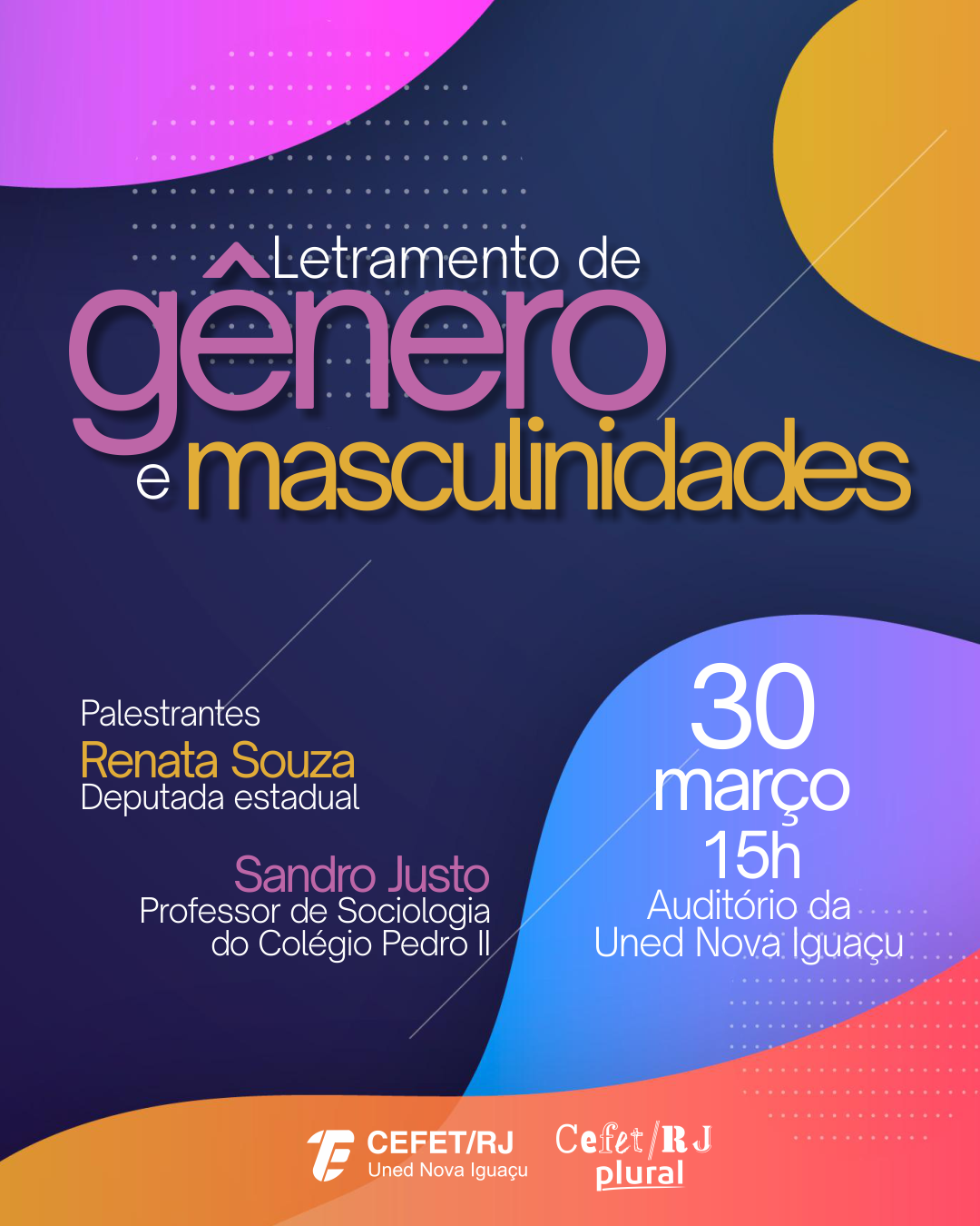 Na próxima segunda-feira (30), o Auditório da Uned Nova Iguaçu vai receber a palestra “Letramento de gênero e masculinidades”, conduzida pela deputada estadual Renata Souza e por Sandro Justo, professor do Colégio Pedro II. O encontro inicia às 15h e é aberto à comunidade acadêmica, sem necessidade de inscrição prévia. O objetivo é propor uma reflexão crítica sobre como as construções sociais de gênero influenciam comportamentos e estruturas institucionais, além de abordar a importância de promover formas mais responsáveis de ser homem na sociedade contemporânea.