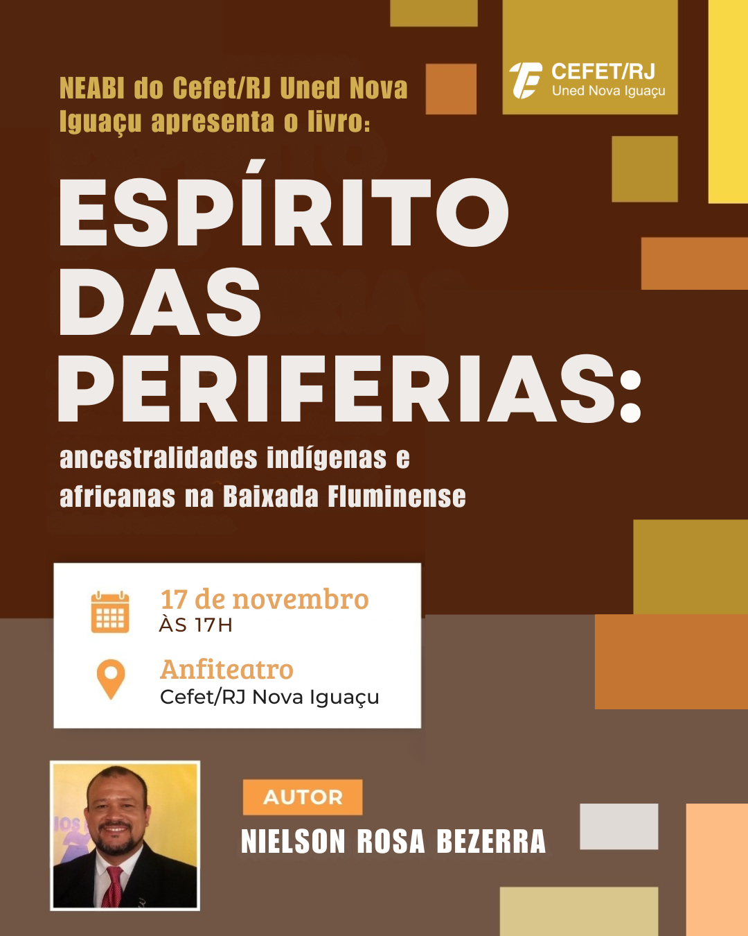 O Núcleo de Estudos Afro-Brasileiros e Indígenas (NEABI) do Cefet/RJ Uned Nova Iguaçu promove um evento sobre o livro “Espírito das Periferias: ancestralidades indígenas e africanas na Baixada Fluminense”, de Nielson Rosa Bezerra. O escritor e professor universitário da Universidade do Estado do Rio de Janeiro (UERJ) destaca as raízes e identidades afro-indígenas, aprofundando o diálogo com a comunidade interna e externa. O evento será realizado no dia 17 de novembro, às 17h, no anfiteatro da Uned.