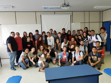 Equipes e organizadores presentes na cerimônia de premiação do Desafio