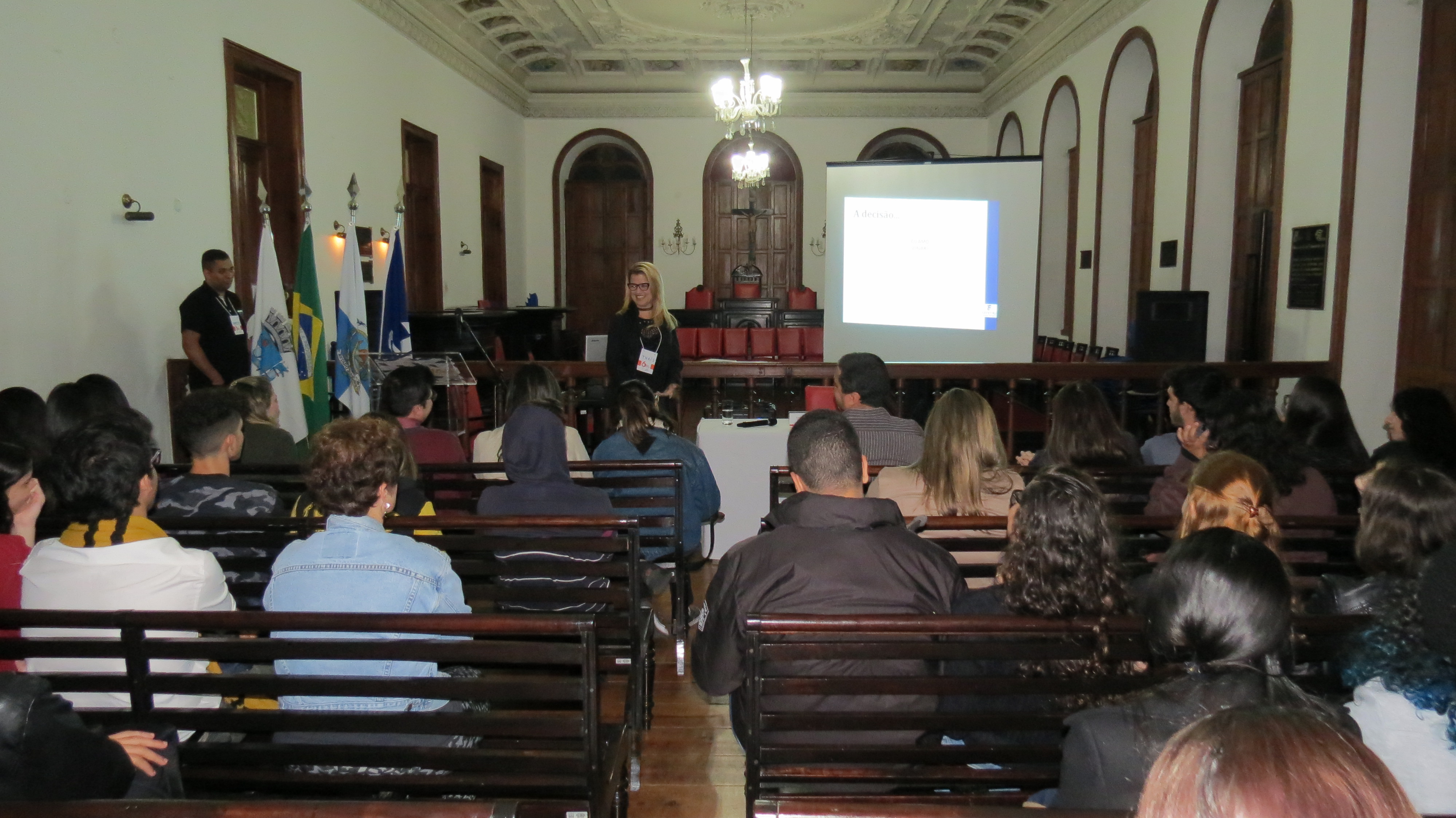 Uma conferência sobre as oportunidades e os desafios de um turismólogo marcou o início da 6ª Semana de Turismo do Cefet/RJ campus Petrópolis. Ministrado por Thaís de Oliveira Lima, presidente do Juiz de Fora e Região Convention & Visitors Bureau, a apresentação lotou o Salão Nobre da unidade com discentes, docentes e interessados na área.