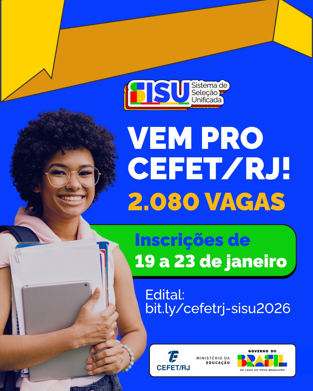 Na quarta-feira (14), o Cefet/RJ divulgou o edital do processo seletivo para ingresso nos cursos de graduação da instituição. Neste certame, são ofertadas 2.080 vagas a serem preenchidas no 1º e no 2º semestres de 2026. As inscrições poderão ser realizadas entre os dias 19 e 23 de janeiro, exclusivamente pelo site do Sistema de Seleção Unificada (Sisu), no endereço acessounico.mec.gov.br/sisu. Não há cobrança de taxa. Estão aptos a concorrer no processo seletivo os candidatos que participaram de uma ou mais edições do Exame Nacional do Ensino Médio (Enem), referentes aos anos de 2023, 2024 e 2025*, e obtiveram a pontuação mínima exigida para cada curso.