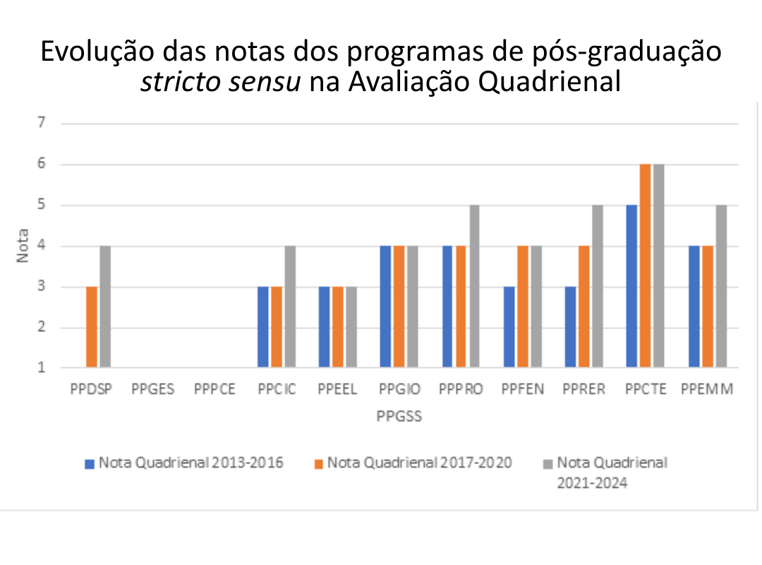Conforme os resultados preliminares, três programas de pós-graduação stricto sensu do Cefet/RJ alcançaram nota 5 (muito bom): os programas em Relações Étnico-Raciais (PPRER), Engenharia de Produção e Sistemas (PPPRO) e Engenharia Mecânica e Tecnologia de Materiais (PPEMM). Já os programas em Ciência da Computação (PPCIC) e em Desenvolvimento Regional e Sistemas Produtivos (PPDSP) obtiveram nota 4 (bom). Os demais permaneceram com as notas da avaliação anterior, com destaque para o Programa de Pós-Graduação em Ciência, Tecnologia e Educação (PPCTE), que manteve a nota 6 (excelência) pelo segundo ciclo consecutivo.