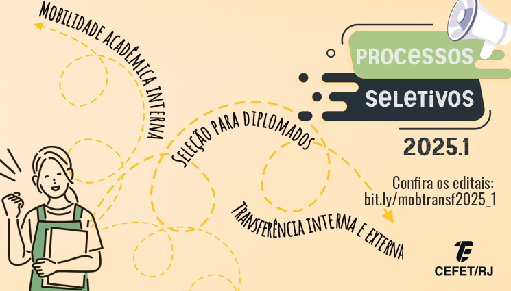 Mobilidade acadêmica interna – seleção voltada para estudantes dos cursos de graduação do Cefet/RJ interessados em cursar até duas disciplinas de bacharelado, licenciatura ou superior em tecnologia da instituição, na modalidade presencial, no primeiro período de 2025.