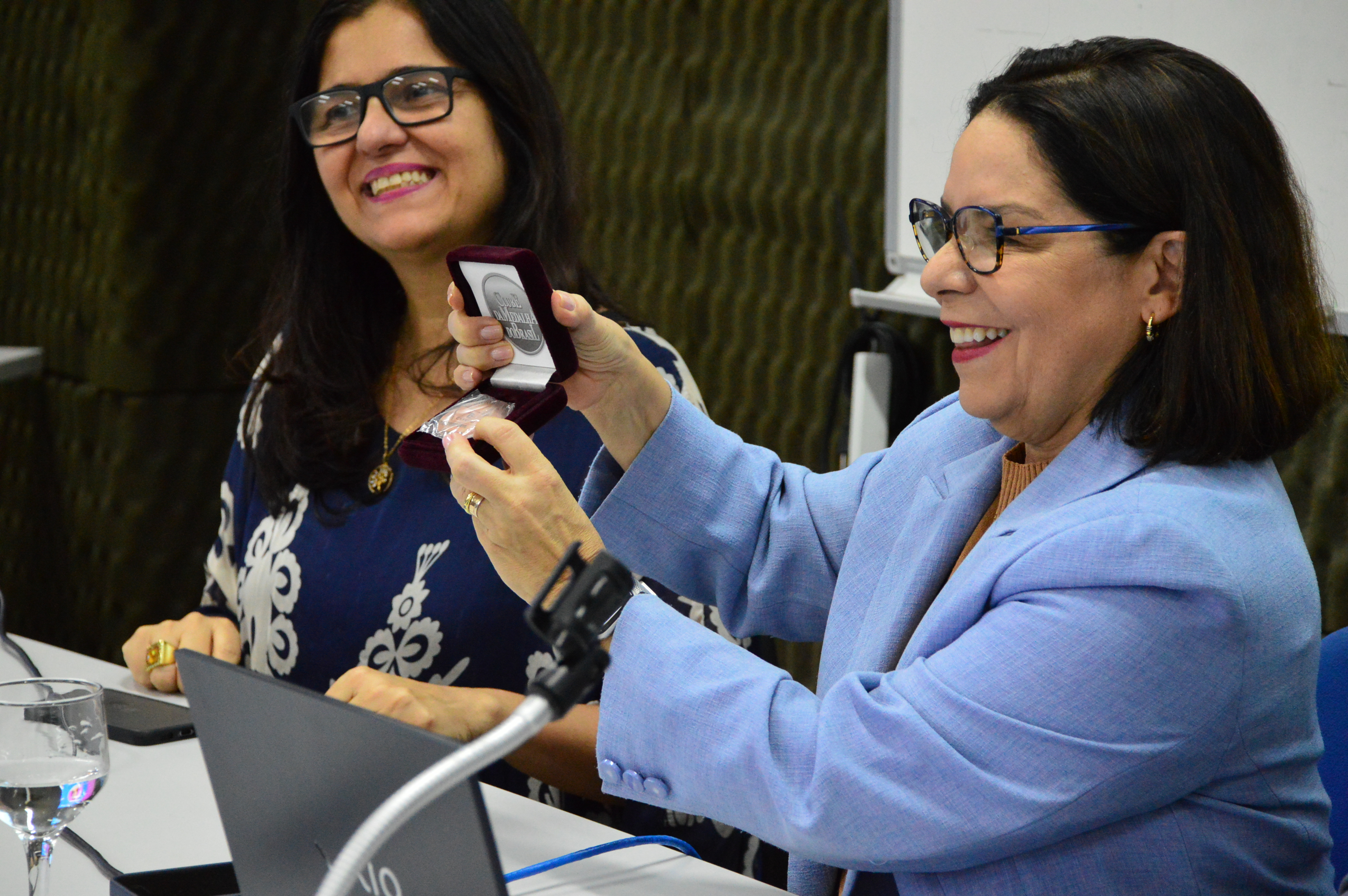 Na abertura da aula inaugural, Denise Pires de Carvalho foi homenageada com a medalha do centenário do Cefet/RJ, cunhada pela Casa da Moeda, em reconhecimento à sua trajetória profissional e à sua contribuição para a pesquisa e a ciência