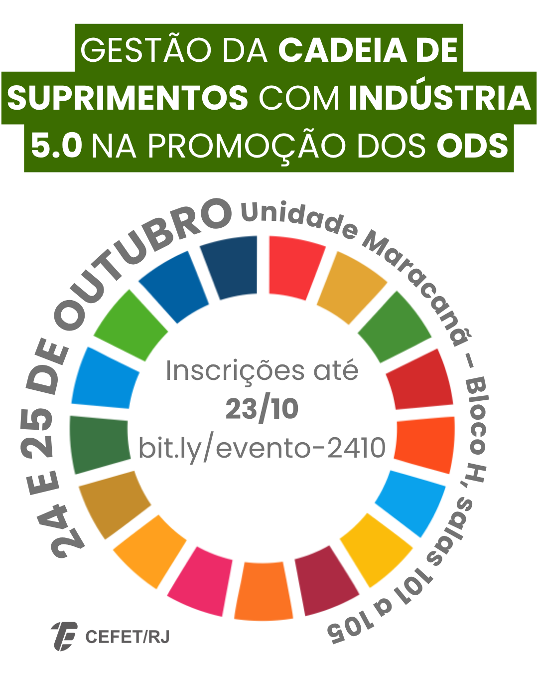Nos dias 24 e 25 de outubro de 2025, o Cefet/RJ realizará o evento “Gestão da cadeia de suprimentos com Indústria 5.0 na promoção dos Objetivos de Desenvolvimento Sustentável (ODS)”. A iniciativa é voltada aos alunos da educação profissional técnica integrada e subsequente ao ensino médio da instituição, além de estudantes do Colégio Cristão Aggregare e de outras instituições participantes, como a Universidade Federal do Estado do Rio de Janeiro (UNIRIO) e a Universidade Federal Fluminense (UFF). A intenção é estimular a pesquisa, a criatividade, o trabalho em equipe e a aplicação de conceitos de sustentabilidade, inovação e gestão, alinhados aos Objetivos de Desenvolvimento Sustentável da ONU.